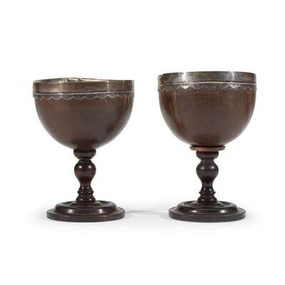 Pair of silver-mounted coconut goblets associated with Thomas Chalkley (1675-1741) First quarter of the 18th century
