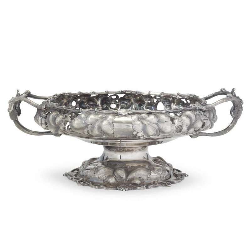 Silver repoussé two-handled footed bowl Jones, Shreve, Brown & Co., Boston, MA, circa 1855-1860