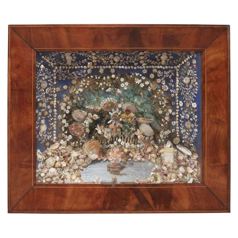 The picture with mahogany frame, depicting a stylized garden and the mirror, signed and dated, "Castisi Domenico 1857."