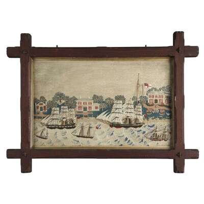 Sailor-made 'Woolie': Five Ships by a Coastline in white water England, circa 1875