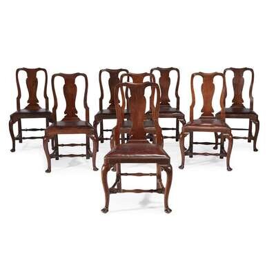 Set of eight Queen Anne carved mahogany side chairs circa 1740 or later