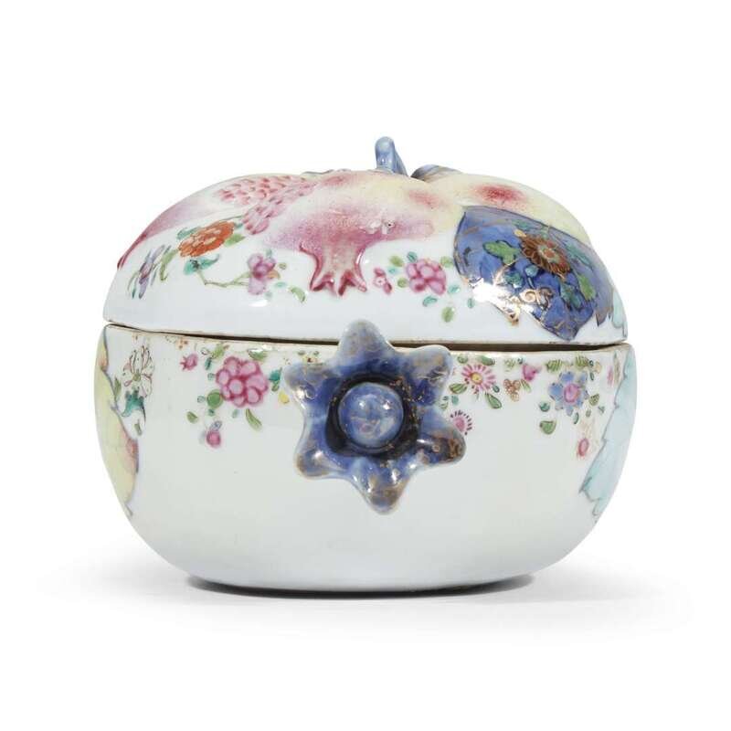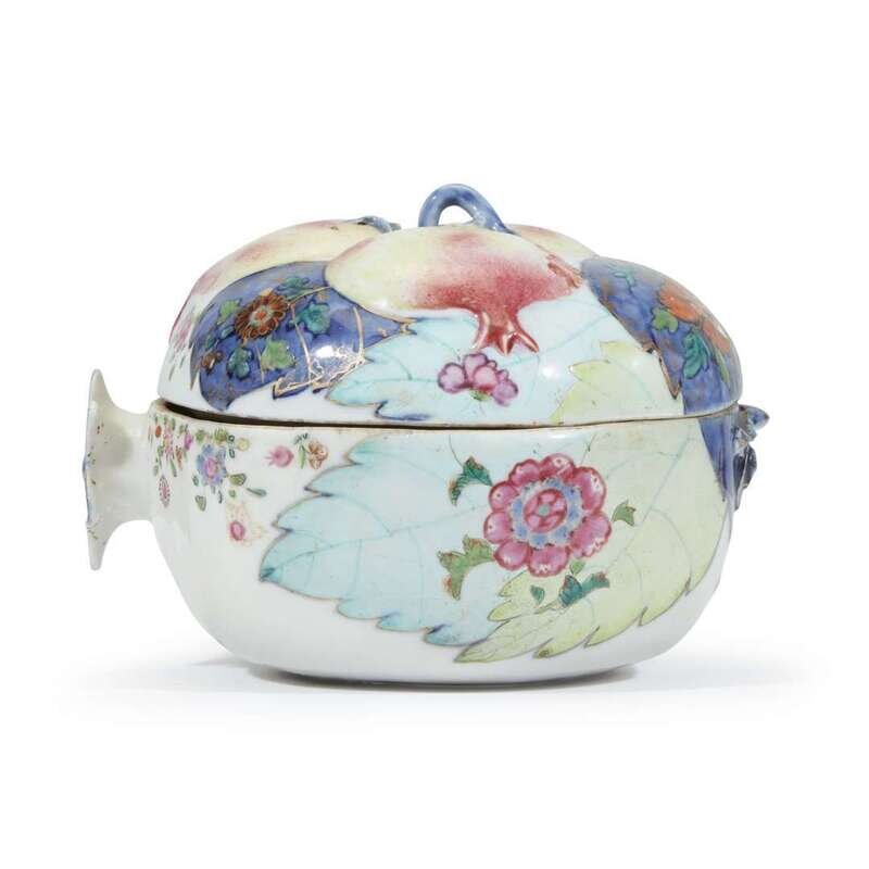 Chinese Export porcelain 'Tobacco leaf' pomegranate-form covered dish circa 1775