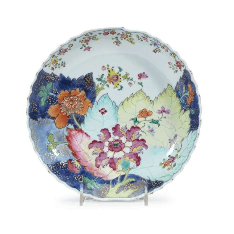 Large Chinese Export porcelain 'Tobacco leaf' shallow bowl