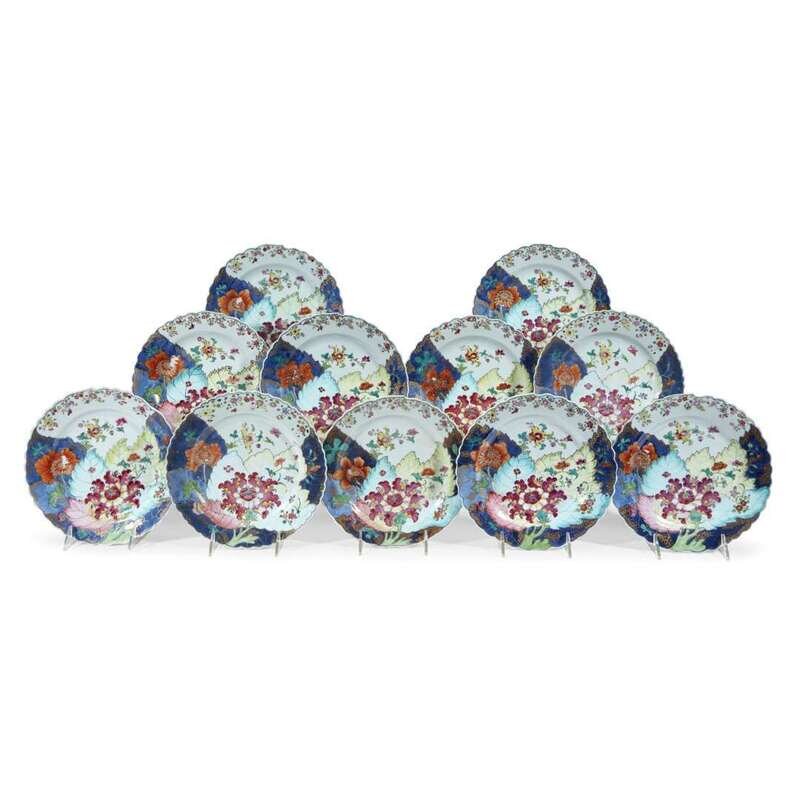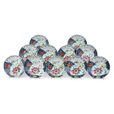 Eleven Chinese Export porcelain 'Tobacco leaf' dinner plates circa 1775