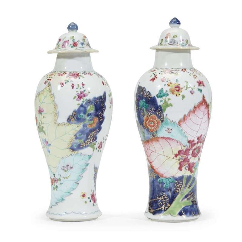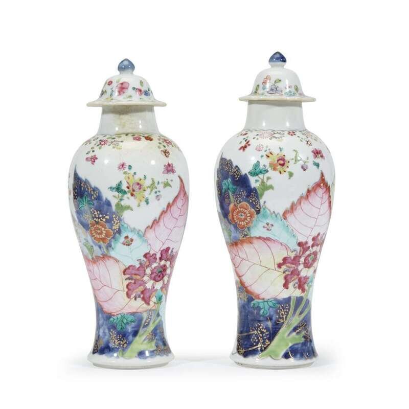 Pair of Chinese Export porcelain 'Tobacco leaf' covered vases circa 1775