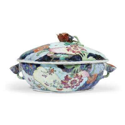Chinese Export porcelain 'Tobacco leaf' covered soup tureen circa 1775