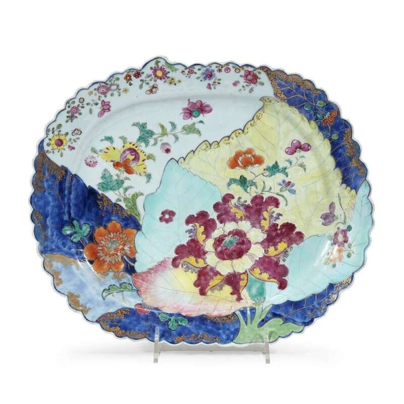 Large Chinese Export porcelain 'Tobacco leaf' platter circa 1775