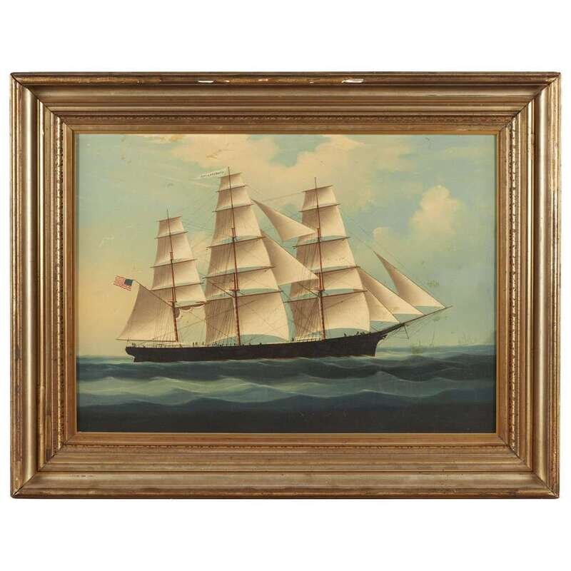 Chinese School 19th century Portrait of the Clipper Ship North American in open waters
