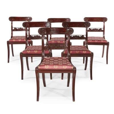 Group of six Classical carved mahogany side chairs Boston, MA, circa 1830