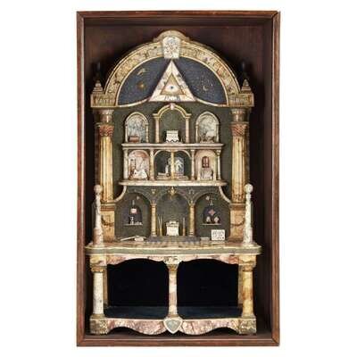 Shadowbox with Masonic Model Made by George M. Silsbee (1840-1900), Leadville, CO, 1880s