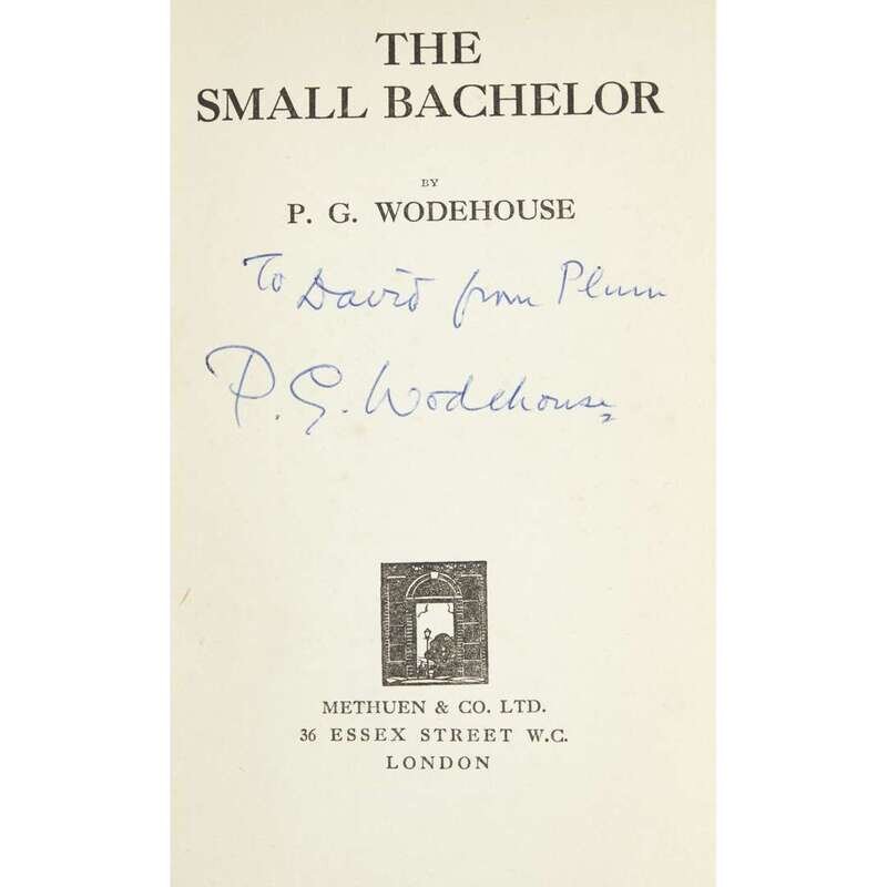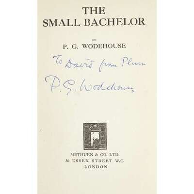 London: Methuen & Co., (1927). First edition, first issue. 8vo. (iv), 251, (1), 8 (ads) pp. Inscribed by Wodehouse to his bibliographer and biographer David A. Jasen on title-page: "To David/from Plum/P.G. Wodehouse." Original blue cloth-covered boards, slightly cocked, front and rear joint lightly rubbed, faint scratch on rear board; all edges trimmed; hinge worn at half-title, scattered spotting to text; lacking dust-jacket. McIlvaine A37a.