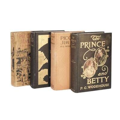 Locations vary, 1912-1917. In four volumes. Condition varies. Includes: 1. The Prince and Betty New York: W.J. Watt & Company, (1912). First edition, first issue. 8vo. Original pictorial black cloth-covered boards, stamped in gilt. McIlvaine A15a. 2. The Little Nugget New York: W.J. Watt & Company, (1914). First American edition, first issue. 8vo. Original pictorial black cloth-covered boards, stamped in gilt; lacking dust-jacket. McIlvaine A16b. 3. Piccadilly Jim New York: Dodd, Mead and Company, (1917). First edition, first issue. 8vo. Original orange cloth-covered boards, stamped in black; lacking dust-jacket. McIlvaine A20a. 4. Piccadilly Jim No place, no date. Cheap issue. Pictorial orange cloth-covered boards, stamped in red and in black; lacking title-page.