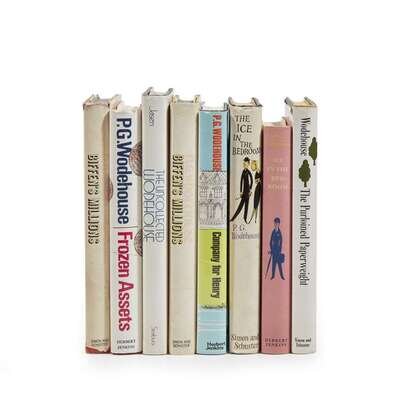Locations vary, 1961-1976. In eight volumes. Condition varies. Includes: 1. The Ice in the Bedroom New York: Simon and Schuster, 1961. First American edition, first issue. 8vo. Original quarter black cloth over black paper-covered boards, stamped in white, red, and yellow; in original illustrated and price-clipped dust-jacket. McIlvaine A84a. 2. Ice in the Bedroom London: Herbert Jenkins, (1961). First English edition, first issue. 8vo. Original red cloth-covered boards, stamped in gilt; in original illustrated and price-clipped dust-jacket. McIlvaine A84b. 3. Biffen's Millions New York: Simon and Schuster, 1964. First American edition. 8vo. Original quarter orange cloth over yellow cloth-covered boards, stamped in black; in original illustrated dust-jacket. McIlvaine A87a. 4. Another copy of the above. 5. Frozen Assets London: Herbert Jenkins, (1964). First English edition, first issue. 8vo. Original red cloth-covered boards, stamped in gilt; in original illustrated dust-jacket. McIlvaine A87b. 6. The Purloined Paperweight New York: Simon and Schuster, (1967). First American edition, first printing. 8vo. Original quarter yellow cloth over gray paper-covered boards, stamped in blue; in original illustrated dust-jacket. McIlvaine A90a. 7. Company for Henry London: Herbert Jenkins, (1967). First English edition. 8vo. Variant black cloth-covered boards, stamped in gilt; in original illustrated dust-jacket. McIlvaine A90b2. 8. [Wodehouse, P.G.] Jasen, David A. The Uncollected Wodehouse New York: A Continuum Book/The Seabury Press, (1976). First edition. 8vo. Original blue cloth covers, stamped in silver; in original illustrated dust-jacket. McIlvaine A99a.