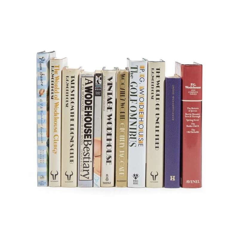 Locations vary, 1967-2003. In 12 volumes. Size and condition varies. Includes: 1. Wodehouse, P.G. Five Complete Novels New York, no date (ca. 1983). Reprint. McIlvaine B26 2. Wodehouse, P.G. The Golf Omnibus New York, no date (ca. 1996). Reprint. 3. Wodehouse, P.G. Tales From the Drones Club London, etc., (1982). First edition. McIlvaine B25a 4. [Wodehouse, P.G.] Wodehouse on New York New York, 1991. Produced as “A keepsake for the 6th International Convention of The Wodehouse Society." 5. Wodehouse, P.G. The World of Uncle Fred London, etc., (1983). First edition. McIlvaine B28a 6. Wodehouse, P.G. The World of Wodehouse Clergy London, etc., (1984). First edition. McIlvaine B31a 7. [Wodehouse, P.G.] P.G. Wodehouse Perpetual Calendar or Book of Days (New York, 1992). First edition. 8. [Wodehouse, P.G.] Bensen, D. R. (editor) A Wodehouse Bestiary New York, 1985. First edition. McIlvaine B34a 9. [Wodehouse, P.G.] Gould, Charles E., Jr. The P. G. Wodehouse Quiz Book London, etc., (1990). First edition thus. Not in McIlvaine 10. [Wodehouse, P.G.] Jaggard, Geoffrey Wooster’s World: A Companion to the Wooster-Jeeves Cycle of P. G. Wodehouse, LL.D. London, (1967). First edition. McIlvaine H26 11. [Wodehouse, P.G.] Usborne, Richard Plum Sauce: A P.G. Wodehouse Companion Woodstock and New York, (2003). First edition. 12. [Wodehouse, P.G.] Usborne, Richard (editor) Vintage Wodehouse (London, 1977). First edition. McIlvaine B19 (noted as 1978).