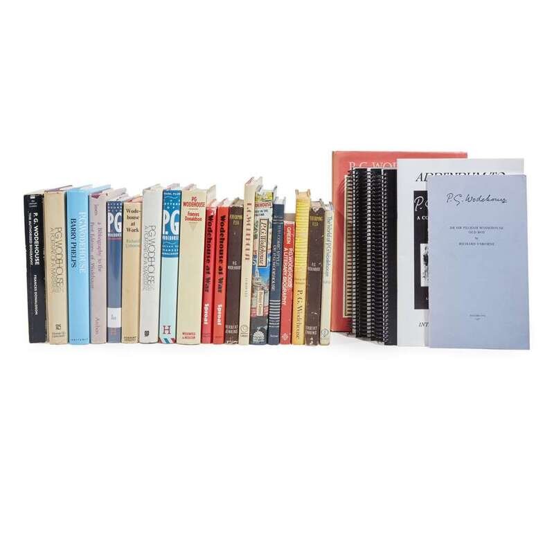 Locations vary, 1953-2001. In 23 volumes. Size and condition varies. Includes: 1. Connolly, Joseph P.G. Wodehouse: An Illustrated Biography With Complete Bibliography and Collector’s Guide London, (1979). First edition. McIlvaine H11 2. Donaldson, Frances P.G. Wodehouse: A Biography London, (1982). First edition. McIlvaine H14 3. Donaldson, Frances P.G. Wodehouse: The Authorised Biography (London, 1992). First edition thus. 4. Donaldson, Frances (editor) Yours, Plum: The Letters of P.G. Wodehouse New York, (1990). First edition. Not in McIlvaine 5. Green, Benny P.G. Wodehouse: A Literary Biography (London, 1981). First edition. McIlvaine H20 6. Green, Benny P.G. Wodehouse: A Literary Biography Oxford University Press, 1983. First edition thus. McIlvaine H20 7. Hall, Robert A., Jr. The Comic Style of P.G. Wodehouse (Hamden, Connecticut), 1974. First edition. Dust-jacket wanting. McIlvaine H21 8. Heineman, James H., and Donald R. Bensen (editors) P.G. Wodehouse: A Centenary Celebration, 1881-1981 New York and London, (1981). First edition. McIlvaine H33 9. Jasen, David A. A Bibliography and Reader’s Guide to the First Editions of P. G. Wodehouse No place (but Hamden, Connecticut), 1970. First edition. McIlvaine H2 10. Jasen, David A. P.G. Wodehouse: A Portrait of a Master New York, (1974). First edition. McIlvaine H27 11. Jasen, David A. P.G. Wodehouse: A Portrait of a Master (London, 1975). First English edition. McIlvaine H27 12. McIlvaine, Eileen, et al. P.G. Wodehouse: A Comprehensive Bibliography and Checklist New York and Detroit, no date (ca. 1990). In three volumes. First edition? Proof copy? No copyright page. Text printed on rectos only. 13. McIlvaine, Eileen, et al. Addendum to P.G. Wodehouse: A Comprehensive Bibliography and Checklist No place, no date (ca. 2001). Presumed first edition. 14. Phelps, Barry P.G. Wodehouse: Man and Myth London, (1992). First edition. 15. Sproat, Iain Wodehouse at War (London, 1981). First edition. James H. Heineman‘s copy and with his book-plate on front paste-down. McIlvaine H35 16. Sproat, Iain Wodehouse at War New Haven and New York, 1981. First American edition. McIlvaine H35 17. Usborne, Richard After Hours With P.G. Wodehouse New York, (1991). First American edition. Ex-library. 18. Usborne, Richard Dr Sir Pelham Wodehouse, Old Boy: The Text of an Address Given by Richard Usborne at the Opening of the P. G. Wodehouse Corner in the Library of Dulwich College, October 15,1977 London, 1978. Second printing. McIlvaine H40 19. Usborne, Richard Wodehouse at Work: A Study of the Books and Characters of P.G. Wodehouse Across Nearly 60 years London, (1961). First Edition. McIlvaine H41 20. Wind, Herbert Warren The World of P.G. Wodehouse New York and Washington, (1972). First edition. McIlvaine H43 21. Wodehouse, P.G. Performing Flea: A Self-Portrait in Letters London, (1953). First edition. McIlvaine A76a 22. Wodehouse, P.G. Performing Flea: A Self-Portrait in Letters London, (1953). First edition. McIlvaine A76a (another copy) 23. Wodehouse, P.G. Author! Author! New York, 1962. First edition. McIlvaine A76b.