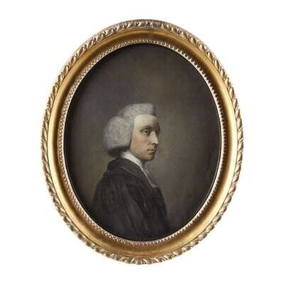 Ca. 1790s. Watercolor on paper. Contemporary label of "Freeman, Carver, Guilder and Looking Glass Manufacturers, Norwich", on verso. 12 1/2 x 10 1/4 in. (31.7 x 26cm). In oval frame.