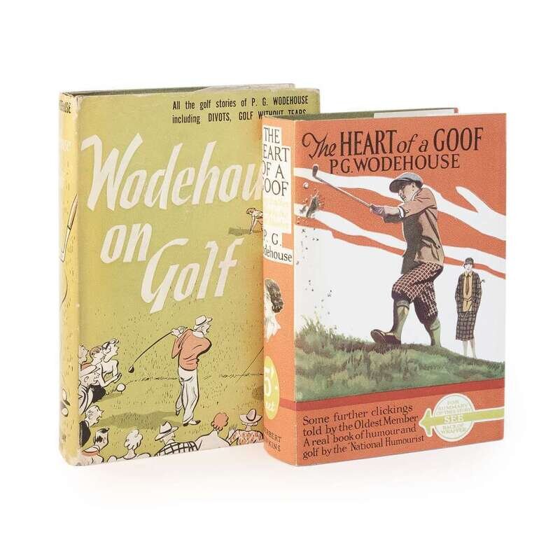 London: Herbert Jenkins Limited, 1926 (but, 1927). First reissue. 8vo. (ii), 314, (4) (ads) pp. Original green cloth-covered boards, lightly rubbed and soiled, light wear to front corners, stamped in dark green; all edges trimmed; book-plate of Douglas R. Vining on front paste-down, old ownership signature on front free endpaper; in facsimile dust-jacket. McIlvaine A36a2. Together with: Wodehouse on Golf New York: Doubleday, Doran & Company, Inc., 1940. First edition, first issue. 8vo. 844, (4) pp. Original green cloth-covered boards, spine lightly faded, stamped in dark green; top edge stained green, other edges trimmed; ownership inscription on front free endpaper; in original illustrated dust-jacket, panels faded, light chipping and creasing to edges, a few short closed tears to same, soiling to rear panel and flap. McIlvaine B7a.