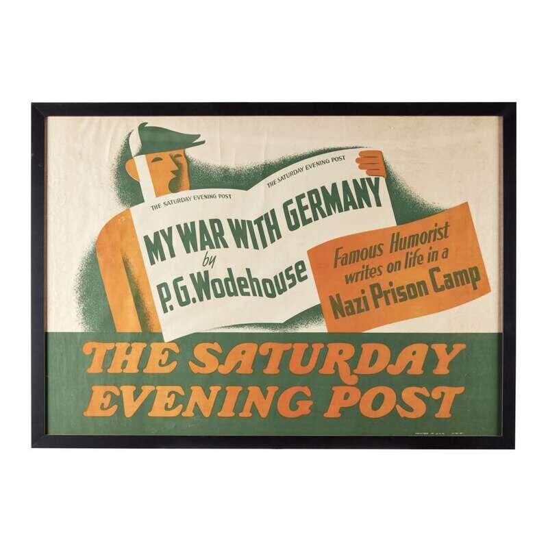 7/19/1941. Advertising poster for Wodehouse's article featured in the Saturday Evening Post. 29 1/2 x 41 1/2 in. (74.9 x 105.4cm). In frame. McIlvaine D59.136.
