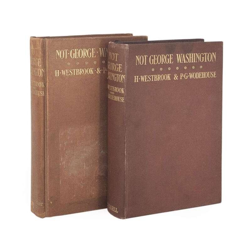 London, etc: Cassell and Company, Limited, 1907. First edition, first issue (with eight gold circles on front board, "Cassell & Company Limited" at foot of spine. McIlvaine calls for "9-1907" in stitching of p. 96, this copy may contain that, but it is amost completely buried in the gutter). 8vo. viii, 279, (1) pp. Illustrated with color frontispiece by John E. Sutcliffe. Original orange-brown cloth-covered boards, rebacked, old lending library sticker residue on front board, soiling to front and rear boards, rear board affected by damp, stamped in gilt; all edges trimmed; lending library stamp on front free endpaper and rear paste-down, book-plate on front paste-down, endpapers spotted, prelims foxed, last leaf lightly foxed, dampstaining to rear paste-down; in blue linen-covered fall-down-back box. McIlvaine A9a. Together with: Not George Washington London, etc: Cassell and Company, Limited, 1907. Second reissue (with seven gold circles on front board, "Cassell" at foot of spine, and "9-1907" in gutter of pp. 96-97). 8vo. viii, 279, (1) pp. Illustrated with color frontispiece by John E. Sutcliffe. Original orange-brown cloth-covered boards, lightly worn, small bubbling along front joint, two stains at top edge of front cover, light soiling to rear board; all edges trimmed; endpapers toned. McIlvaine A9a3.