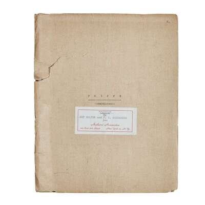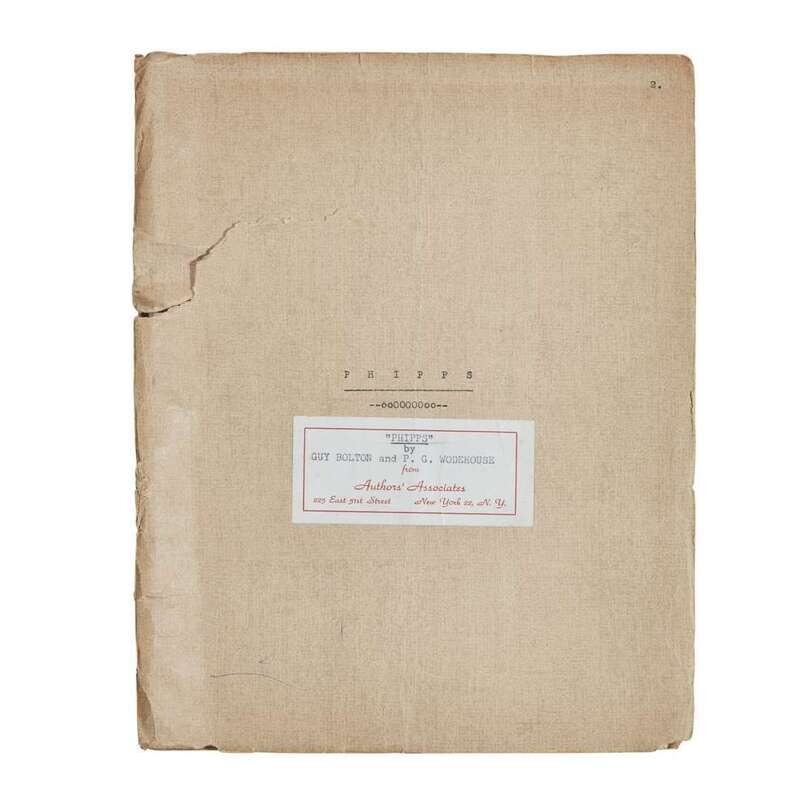 New York: Author’s Associates, no date (but ca. 1951). Play script. 140 onion skin leaves ([3], 65, [1], 71), printed on rectos only. Previous bookseller’s laid in description notes, “This was Wodehouse’s own copy, gifted by him to his biographer David A. Jasen.” In Jasen’s 1974 biography he lists this play as Phipps (Kilroy Was Here), notes the date of 1951, and that it was never produced. Roderick Easdale, in The Novel Life of PG Wodehouse (2004), wrote “…the script of…Joy in the Morning…was originally called Phipps and is the play from which [the novel] The Old Reliable was written, and has no connection with the…novel of the same name…” Easdale also points out that the play (Joy in the Morning, née Phipps) was indeed put on, in 1954, by The Buckfast Players at their Studio Theatre in Ashburton in Devon. On the penultimate page a line has been drawn in blue biro under Phipps’ final line, “Yes, madam”, and is followed by the word “End”, both in an unknown hand but presumably Wodehouse’s. Bound in stiff tan wrappers with pasted on printer’s label with title and authors listed. Also, the number “2” is typed on the top far right corner of the front wrapper, perhaps denoting which number of the printed scripts this copy is? Text further bound in limp ecru wrappers, the whole held together with three brass tabs. In a black cloth-covered fall-down-back box.