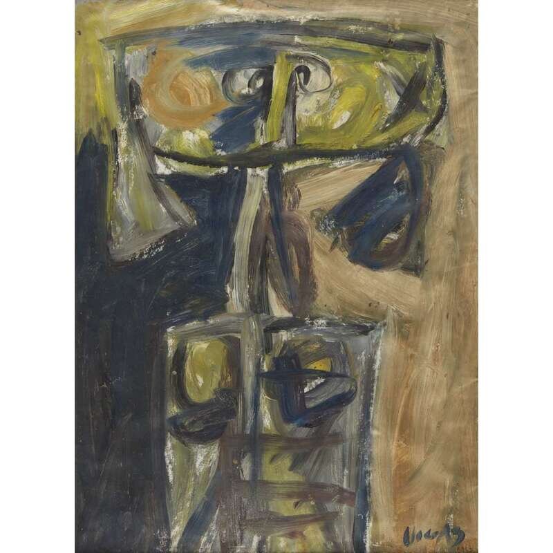 Signed and dated 1965 bottom right, oil on paper laid down to cardboard.