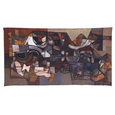 Signed and dated 1979 bottom right, acrylic and silkscreen on cotton cloth. Unique.