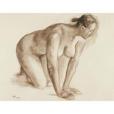 Signed and dated 1967 bottom left, charcoal and pastel on paper.