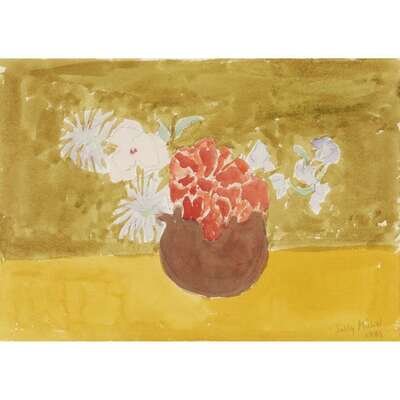 Sally Michel Avery (American, 1902-2003) Still Life on a Yellow Table