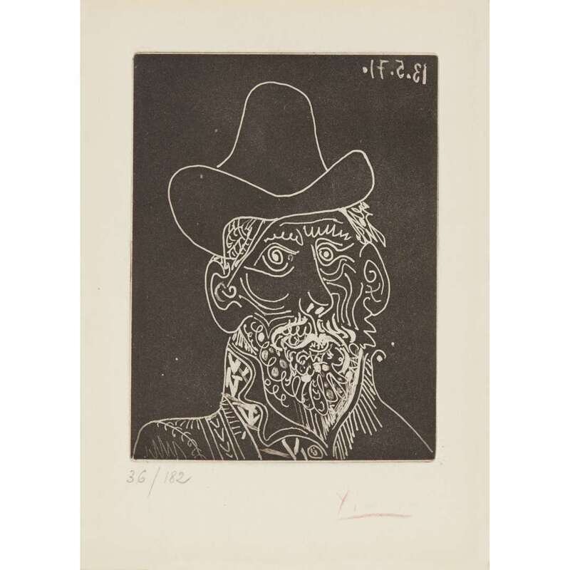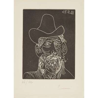 Pablo Picasso (Spanish, 1881-1973) Buste d'Homme Barbu au Chapeau from El Hospital de Santa Cruz y de San Pablo
