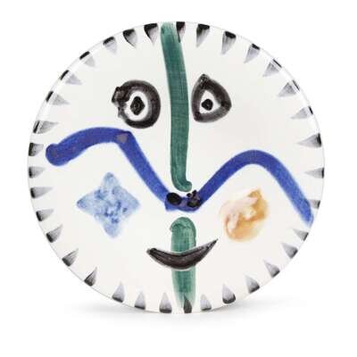 1963, numbered 480/500, inscribed 'N 111,' 'EDITION PICASSO' and 'MADOURA' on the underside. White earthenware clay plate with decoration in engobes and enamel under glaze.