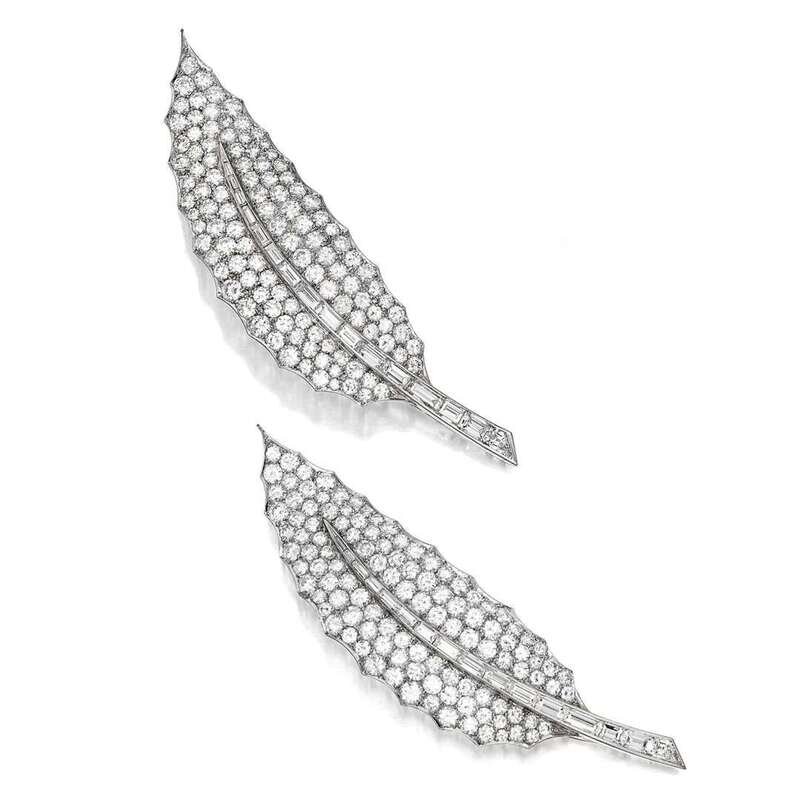 designed as feathers, pavé-set with round brilliant and baguette-cut diamonds; estimated total diamond weight: 25.00 carats.