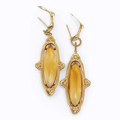 A pair of eighteen karat gold, citrine, and diamond drop earrings, Cellini