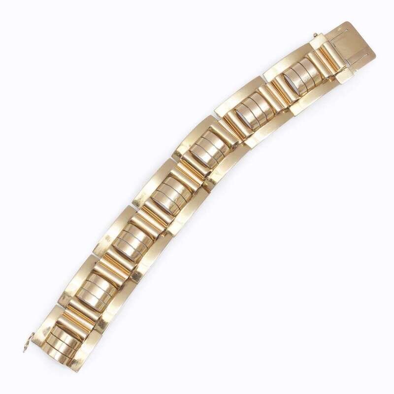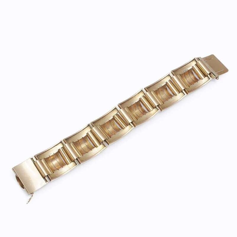 A Retro eighteen karat gold strap bracelet France