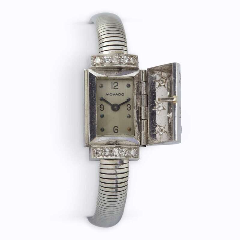 A platinum and diamond covered dial bracelet wristwatch, Movado circa 1950's