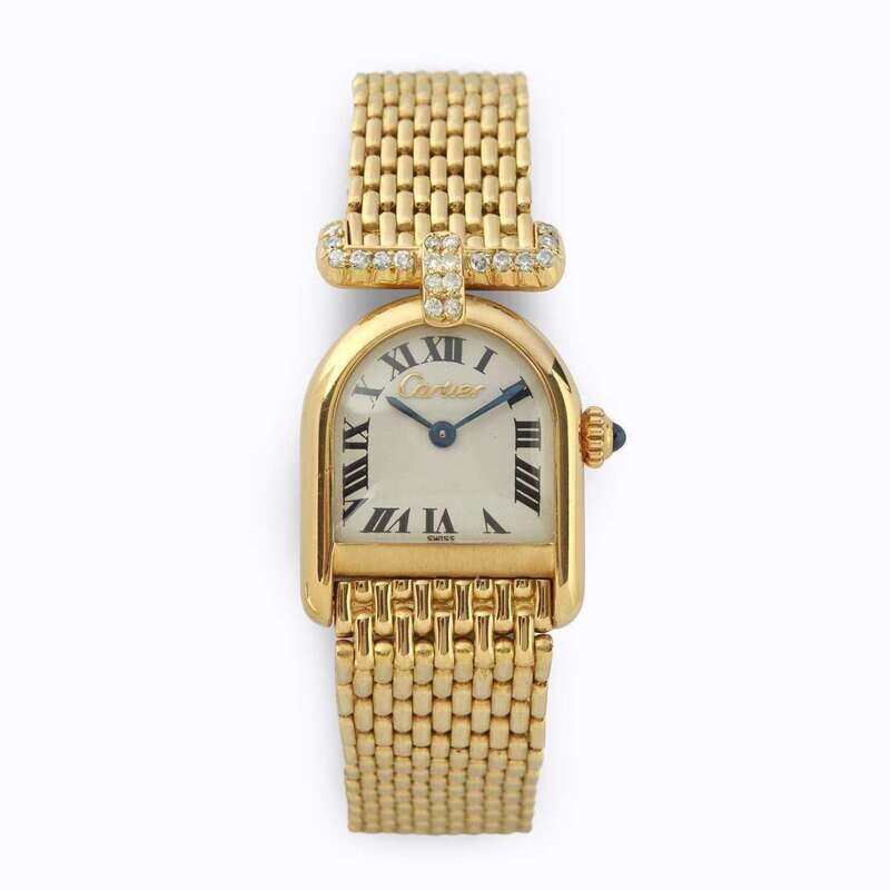 An eighteen karat gold and diamond bracelet wristwatch, Cartier