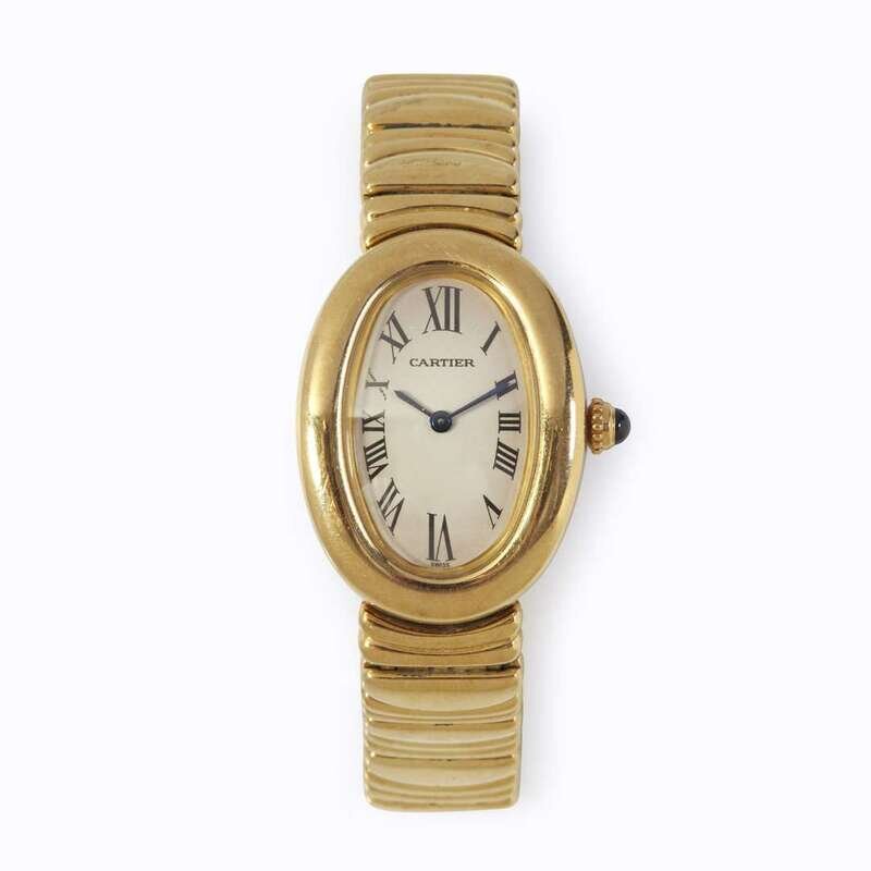 An eighteen karat gold bracelet wristwatch, Cartier Bagnoire