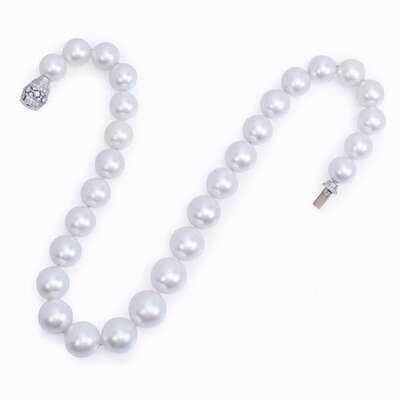 A South Sea pearl, diamond, and platinum necklace