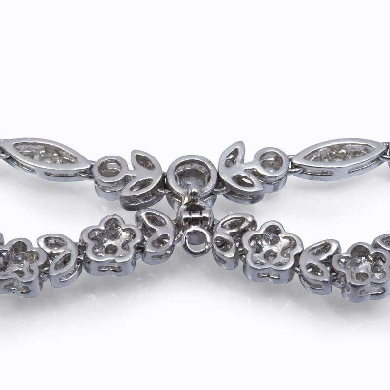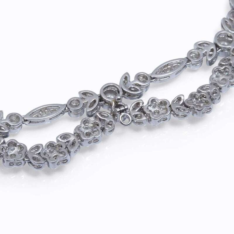 designed as a floral vine with millgrained trim set throughout with round brilliant-cut diamonds; estimated total diamond weight: 7.00 carats.