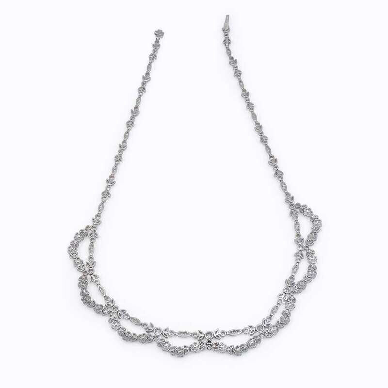 A diamond, platinum, and eighteen karat white gold necklace