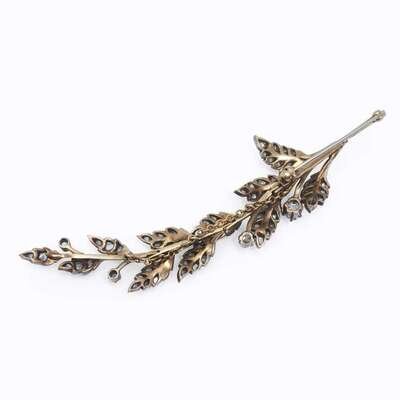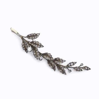 an articulated thread of foliage set with rose-cut diamonds, accented by old mine-cut diamonds buds.