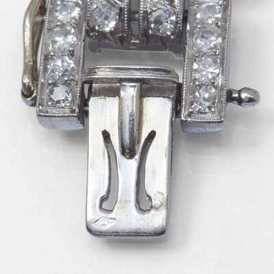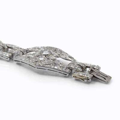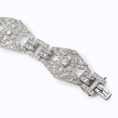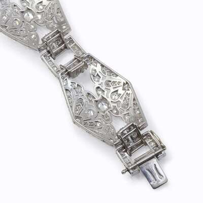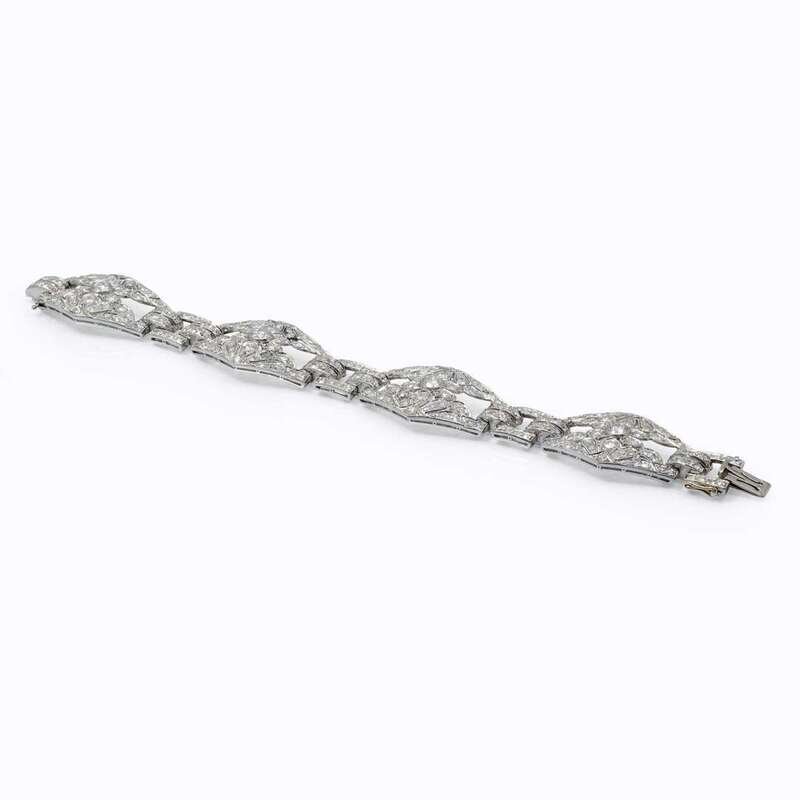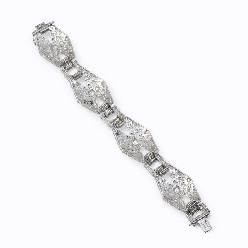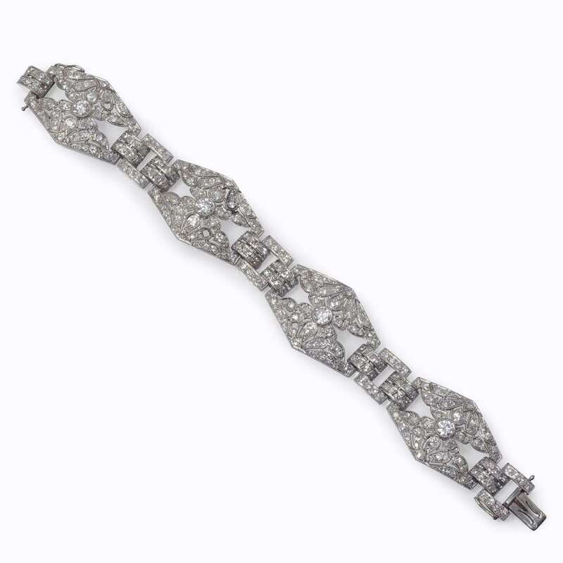 designed as pierced and millegrained hexagonal links set throughout with single and old European-cut diamonds; estimated total diamond weight: 9.50 carats.