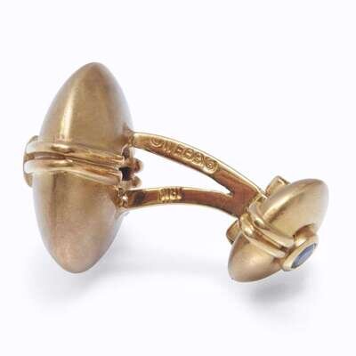 with circular-cut sapphires bezel-set over polished gold straps.