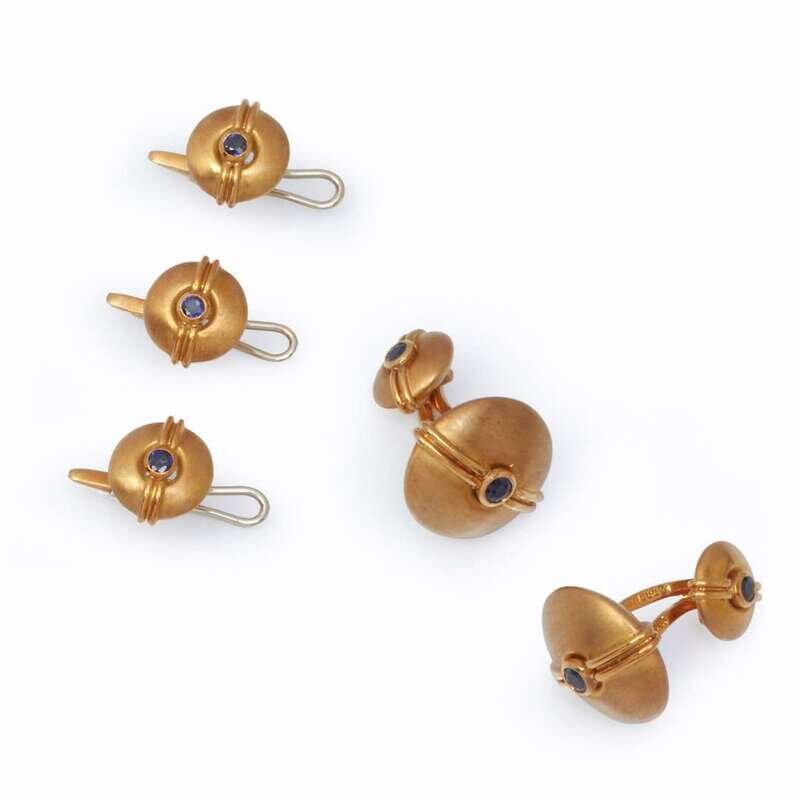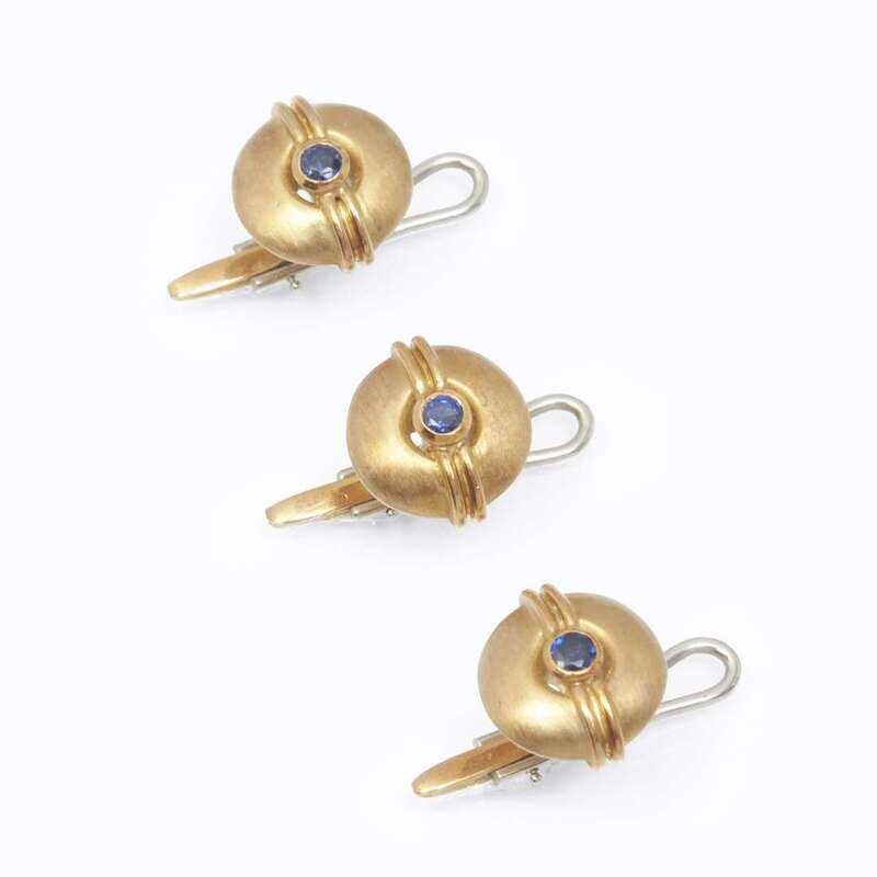A sapphire and eighteen karat gold dress set, David Webb