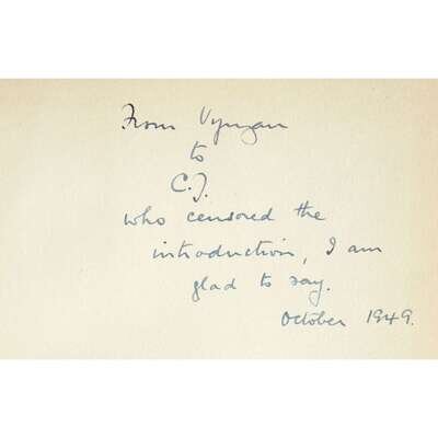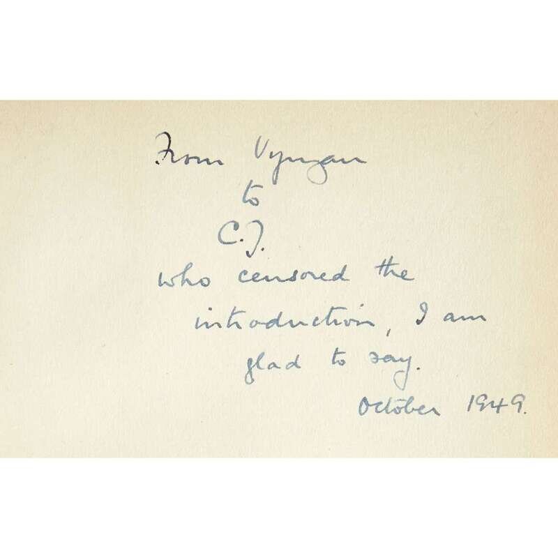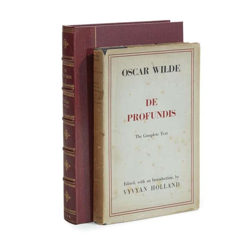 London: Methuen & Co. Ltd., (1949). First unabridged edition. 8vo. (148) pp. Inscribed by editor and Wilde's son, Vyvyan Holland, on front free endpaper: "From Vyvyan/to/C.J./who censored the/introduction, I am/glad to say./October 1949." Original blue cloth, stamped in gilt, slightly cocked; all edges trimmed; in original dust-jacket, spine darkened, covers spotted, creasing and chipping along edges, two repairs on verso; in fall-down-back box; for Asprey & Garrard.