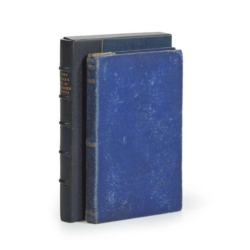 London: John Camden Hotten, 1868. Third edition. 12mo. 130 pp. Rupert Brooke’s copy with, presumably, his ooccasional marginalia throughout. Publisher's blue cloth, stamped in gilt; all edges untrimmed, scorch mark to bottom right corner of title-page extending to p. (viii), text shaken and with split in gutter at title-page; Brooke's ownership signature in green ink, "Ex-Libris/Rupert Brooke" on half-title; enclosed in a blue quarter morocco box.