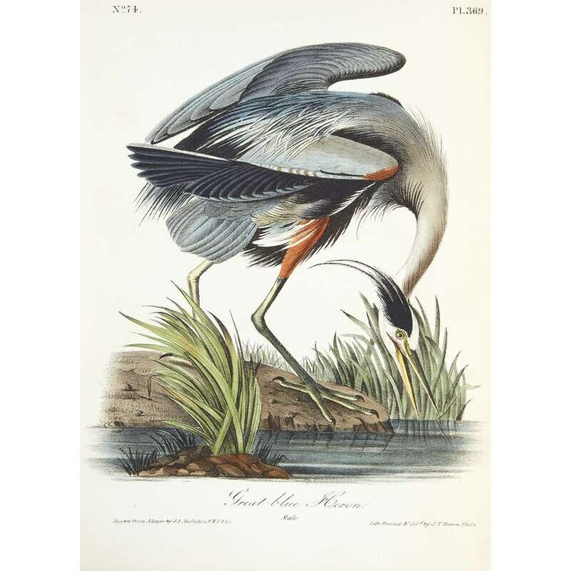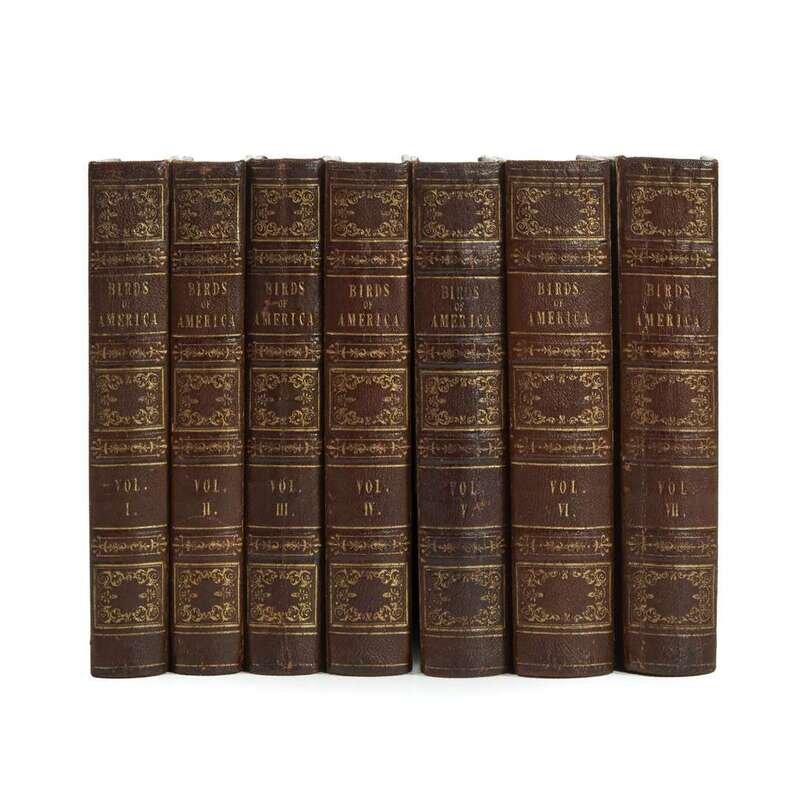 New York: J.J. Audubon/Philadelphia: J.B. Chevalier, 1840-44. In seven volumes. First edition. 8vo. Including subscriber's list at rear of each volume; lacking half-titles. Illustrated with 500 hand-colored lithographic plates (with tissue guards), after Audubon, by W.E. Hitchcock, R. Trembly, and others, as well as numerous in-text and full-page wood engravings; printed and colored by J.T. Bowen. Contemporary full green morocco, some volumes expertly rebacked, edges and spines browned, joints rubbed, minor wear to extremities, 1-inch tear at head of spine of first volume, blistering on spine of seventh volume, upper rear hinge cracked on same, decoratively stamped in gilt and in blind; all edges gilt; gilt dentelles; scattered light to moderate foxing to text in each volume, scattered mostly minor foxing to plates, repair on pp. 107/108 in third volume, split in gutter at pp. 123 in same, gutter worn at p. 313 in seventh volume. Reese 34; Sabin 2364.