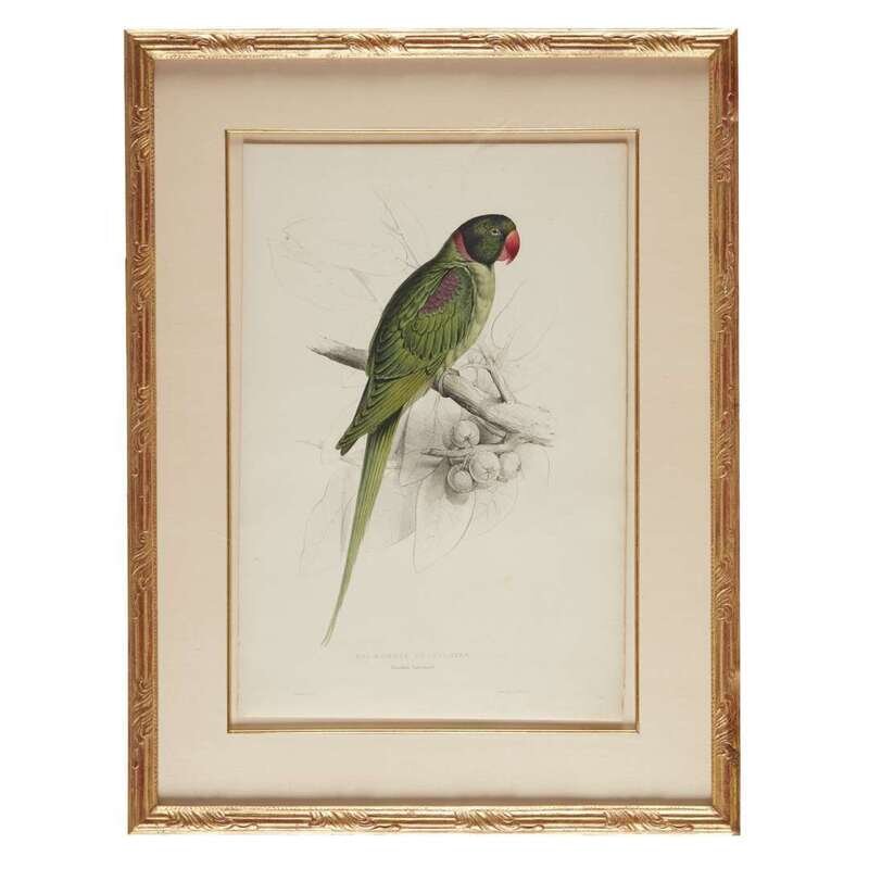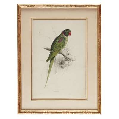 No place, no date (ca. 1830-32). Hand-colored lithograph; from Lear's "Illustrations of the Family of Psittacidae, or Parrots". Printed by C. Hullmandel. 21 1/2 x 14 1/2 in. (54.6 x 36.8cm). Minor edge wear, scattered minor spotting. In frame.