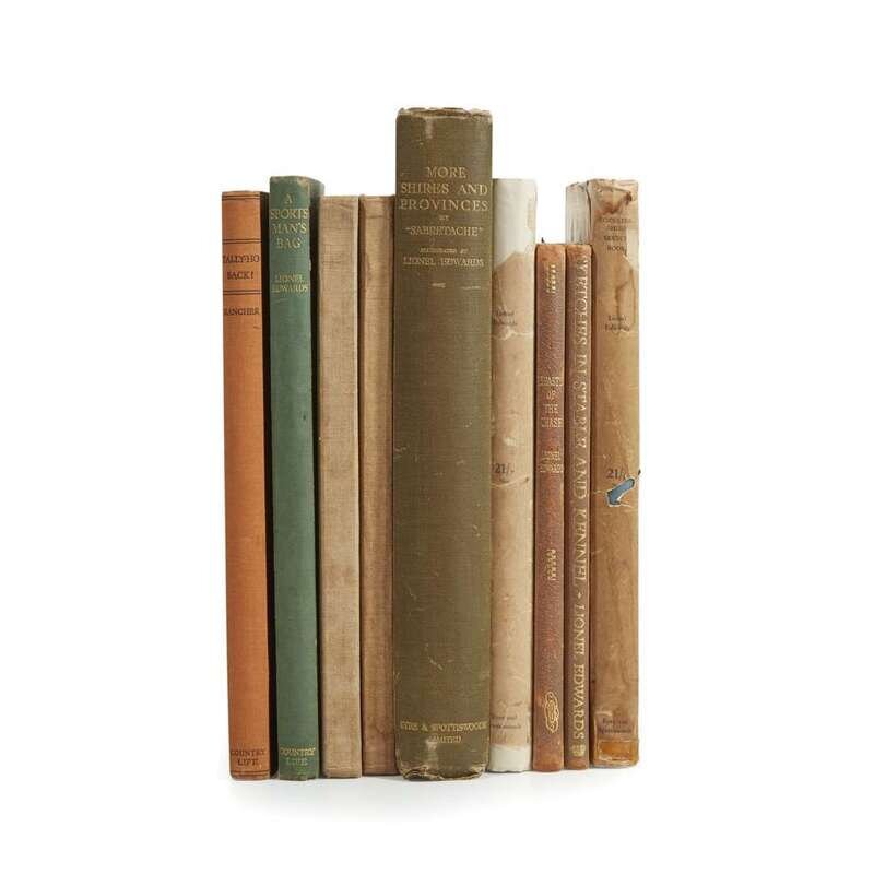 New York, London, 1928-50. Size and condition vary. Includes: 1. Beasts of the Chase. London, (1950). #43/100 copies signed by Edwards. 2. A Leicestershire Sketch Book. London and New York, 1935. First edition. Signed by Edwards. 3. A Leicestershire Sketch Book. London and New York, 1935. First edition. 4. More Shires & Provinces. London and New York, 1928. First edition. 5. My Hunting Sketch Book. London and New York, 1928. First trade edition. 6. My Hunting Sketch Book, Volume Two. London and New York, 1930. First trade edition. 7. Sketches in Stable and Kennel. London, (1949). #46/50 copies signed by Edwards. 8. A Sportsman's Bag. (London), 1937. First edition. 9. Tally-Ho Back! London, (1931). First edition.
