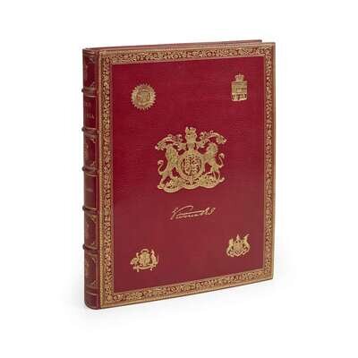 London and Paris: Boussod, Valadon & Co., 1897. #235/350 numbered copies. Folio. 200 pp. Text printed on japon vellum. Profusely illustrated. Laid in is a facsimile 4 pp. letter, dated November 5, 1897, on Balmoral Castle stationery, to the publishers, conveying the Queen's thanks for the quality of the production, from Lieutenant-Colonel Arthur John Bigge, 1st Baron Stamfordham (1849-1931), Private Secretary to Queen Victoria (during the last few years of her reign). Contemporary newspaper review also laid in. Bound in full red levant, elaborately gilt; top edge gilt, other edges untrimmed; cream moire silk doublures and endleaves; by Zaehnsdorf. In slip case.