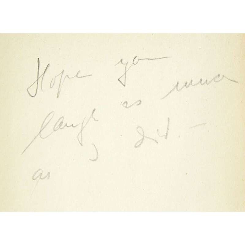Garden City, New York: Doubleday & Company, 1951. First edition. 8vo. (x), 308, (2) pp. Marlene Dietrich's copy, inscribed by her on front free endpaper: "Hope you/laugh as much/as I did", and again on pp. 51: "Cary Grant/a little change/to hide it". Original green cloth, stamped in silver, spine darkened, spine ends lightly worn, edges faded, small nick on rear joint, scattered soiling; all edges trimmed; creasing at upper edge of pp. 207/208; lacking dust-jacket; in quarter green goatskin solander box. Together with: To Step Aside: Seven Short Stories London and Toronto: William Heinemann Ltd, (1939). First edition. 8vo. (x), 318 pp. Original blue cloth, stamped in blind and in gilt, slightly cocked, soiling to front and rear boards, corners lightly worn; all edges trimmed; ownership initials at head of front free endpaper, faint annotations in pencil on front and rear paste-downs; in later issue orange dust-jacket ("Second Large Printing"), spine faded, small chip at head of spine.
